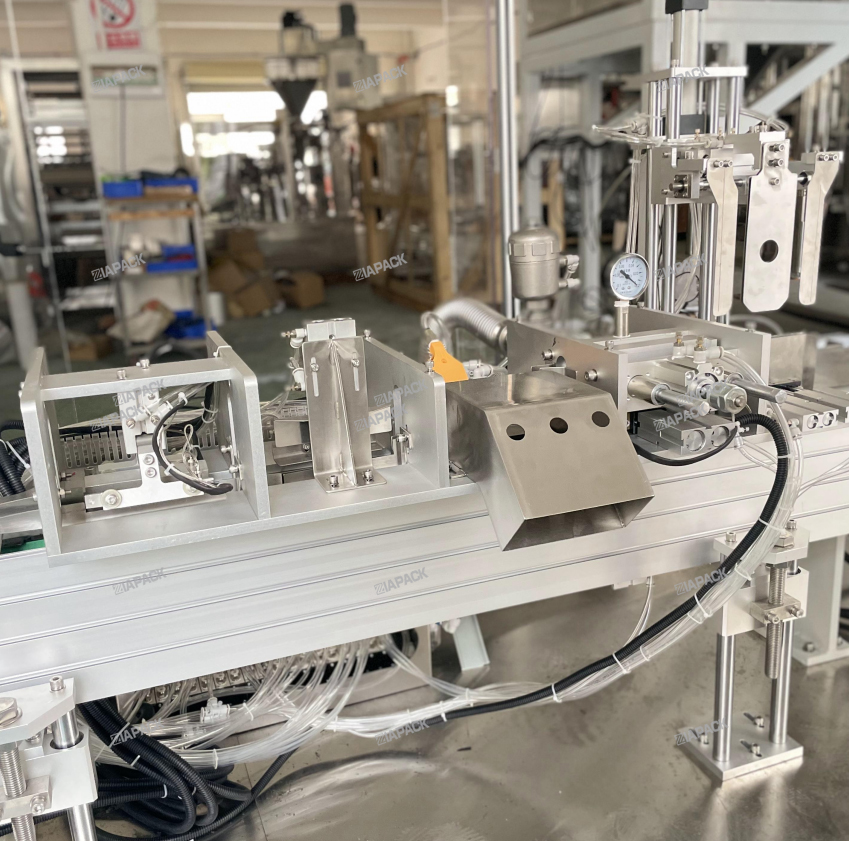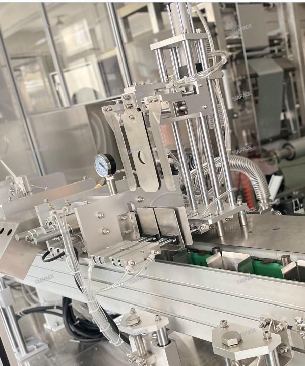دا ماشین د ټاپ لیبل کولو سره د ګسیټ کڅوړه جوړولو لپاره ځانګړی ډیزاین دی . وروسته له دې چې په ماشین کې د محصول ډراپ سره بشپړ کڅوړه . دا ماشین به کڅوړه لیږدوي ، د یو وخت کڅوړې خولې ته ځي او بیا لیبل چپه کوي. SUS304 .PLC او ټچ سکرین د سیمنز برانډ لخوا غوره کیږي .او نیوماتیک برخې د SMC برانډ غوره کوي . اصلي بریښنایی برخې د اومرون او شنایډر برانډ غوره کوي. دا ماشین د بسته بندۍ اتومات ماشین سره کار کوي ترڅو بشپړ شوي کڅوړې ټاپ لیبلینګ ته ورسیږي. دا ماشین کولی شي په اتوماتيک ډول فعالیت ته ورسیږي. د لیبل جلا کول , لیبل لیږل .د لیبل کشف کونکی او لیبل فشارول .