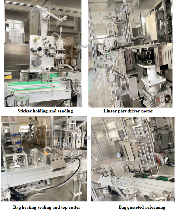ماشین به کڅوړه لیږدوي ، د یو وخت کڅوړې خولې ته ځي او بیا لیبل چپه کوي. د ماشین چوکاټ د SUS304 لخوا جوړ شوی. PLC او ټچ سکرین د سیمنز برانډ لخوا غوره کیږي. او نیوماتیک برخې د SMC برانډ غوره کوي. اصلي بریښنایی برخې د اومرون او شنایډر برانډ غوره کوي. .