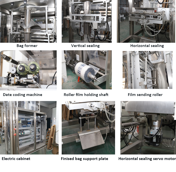 د دې ماشین واحد کې شامل دي یو سیټ ZL720 عمودی کڅوړه د ډکولو سیل کولو ماشین او یو سیټ ZLC-5000 څلور بالټ وزن ماشین ، یو سیټ DT3 عمودی لفټ او د محصول لیږدونکی ماشین. د ماشین ټول واحد کولی شي اتوماتیک کڅوړې جوړولو ، د محصول وزن کولو ، د محصول ډکولو ته ورسیږي. مهر کول او د نیټې کوډ کول .په پراخه کچه د بسته بندۍ سلیټ ، صابون پوډر ، وریجې ، لوبیا او نور دانه محصولاتو کارول.